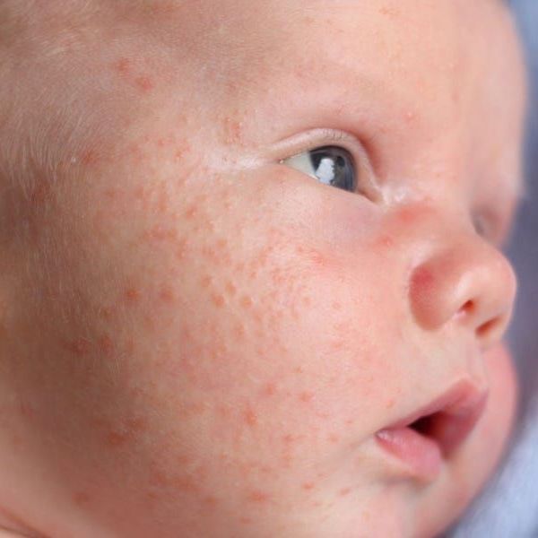 It is believed that acne is caused by hormones passed from mom during pregnancy.