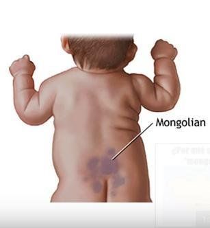 - Mongolian spots: Blue-grey(light green) marks on the back or bottom (fade with time).